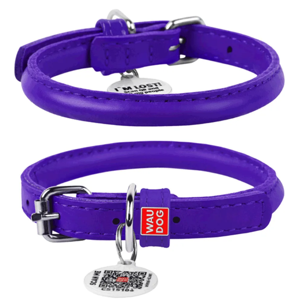 Ошейник для собак кожаный WAUDOG Glamour с QR паспортом круглый 20-25 см/8 мм (фиолетовый)