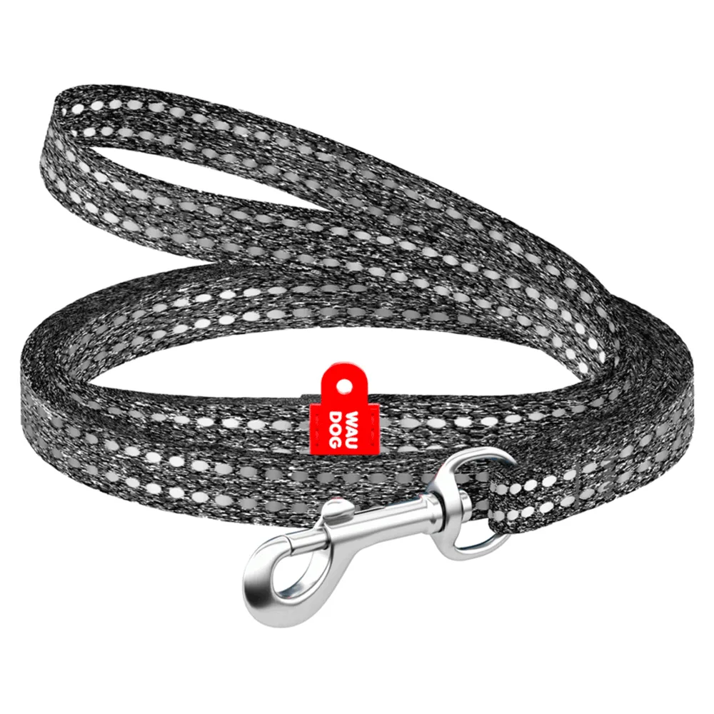 Поводок из хлопка WAUDOG Re-cotton светоотражающий, XS, Ш 10 мм, Д 200 см серый