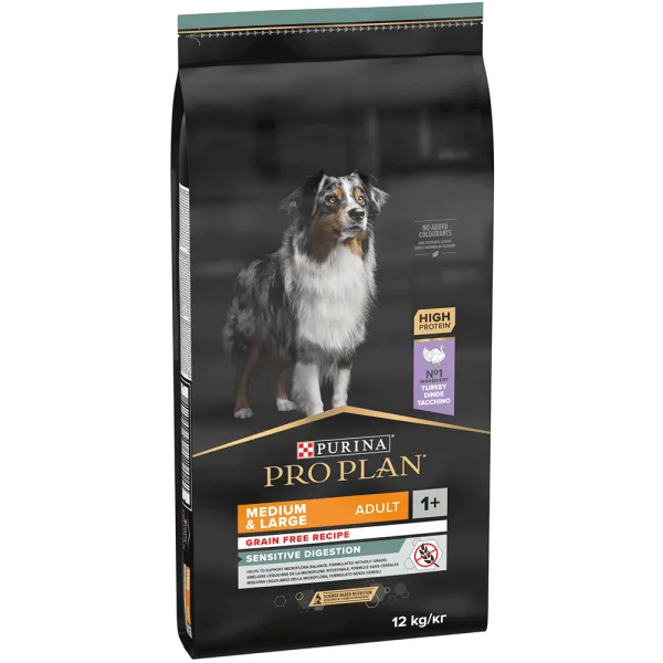 Pro Plan Medium & Large Adult 1+ Sensitive Digestion для взрослых собак с чувствительным пищеварением, беззерновая, с индейкой, 12 кг