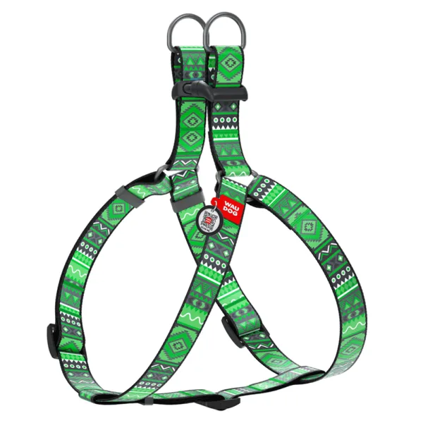 Шлея анатомічна H-подібна WAUDOG Nylon з QR-паспортом Етно зелений 40-55см/15 мм