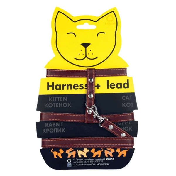 ШЛЕЯ "COLLAR" З ПОВІДЦЕМ ШКІРЯНА НА ПЛАНШЕТІ ДЛЯ КОТІВ (ШИРИНА 12ММ, А:22-30СМ,В:30-40СМ, ДОВЖИНА 122СМ) КОРИЧНЕВИЙ