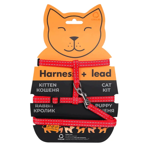 Шлея для котів Dog Extremе з повідцем А:20-30см, В:25-40см, довжина 110см/10мм (червоний)