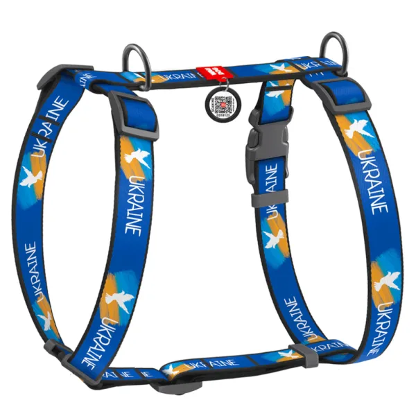 Шлея для собак анатомічна H-образна WAUDOG Nylon з QR-паспортом Прапор М А 40-70, В 50-80/20мм
