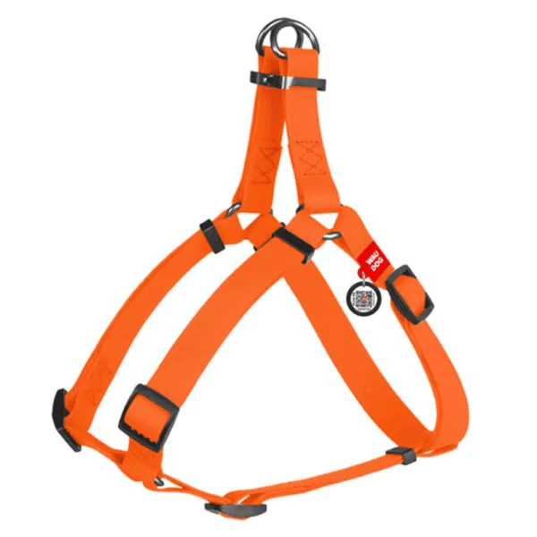 Шлея для собак водостойкая WAUDOG Waterproof с QR паспортом металлическая пряжка-фастекс 40-55 см/15 мм (оранжевый)