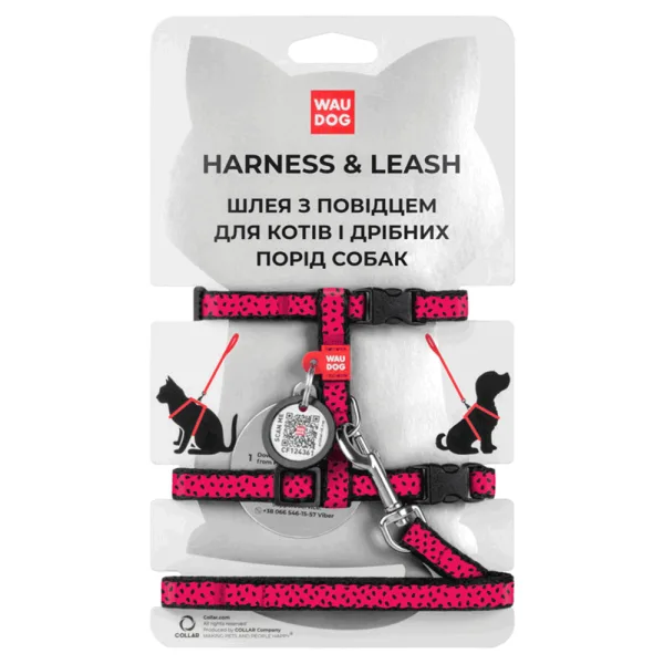 Шлея з повідцем для котів WAUDOG Nylon Кавун В 25-40 см, С 20-30 см/10 мм