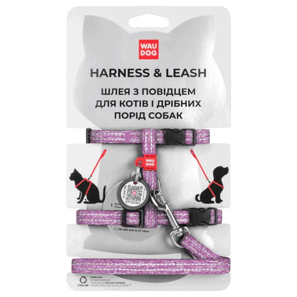 Шлея з повідцем для котів WAUDOG Re-cotton XS Д 122 см, В 25-40 см, С 20-30 см/10 мм (фіолетовий)