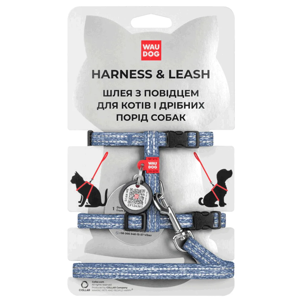 Шлея з повідцем для котів WAUDOG Re-cotton XS Д 122 см, В 25-40 см, С 20-30 см/10 мм (синій)