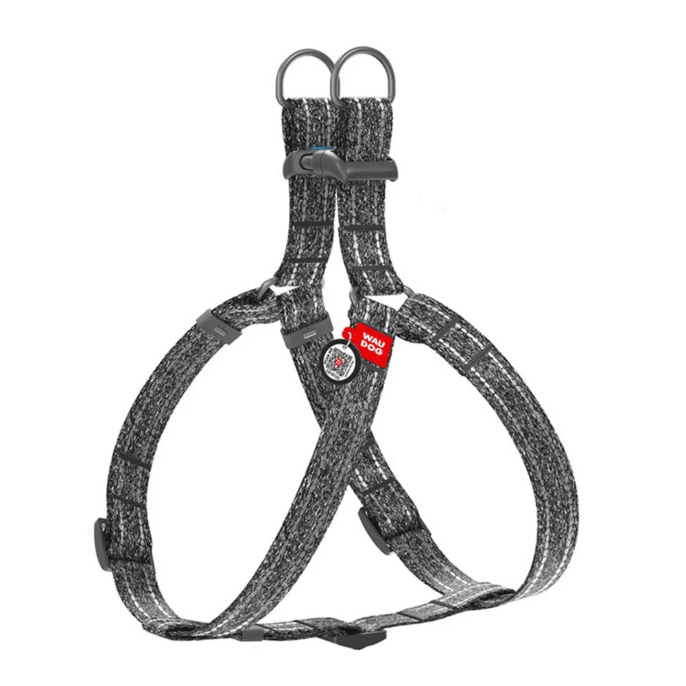 Шлея з відновленої бавовни WAUDOG Re-cotton з QR паспортом, світловідбиваюча, пластиковий фастекс, S, Ш 15 мм, Д 40-55 см сірий