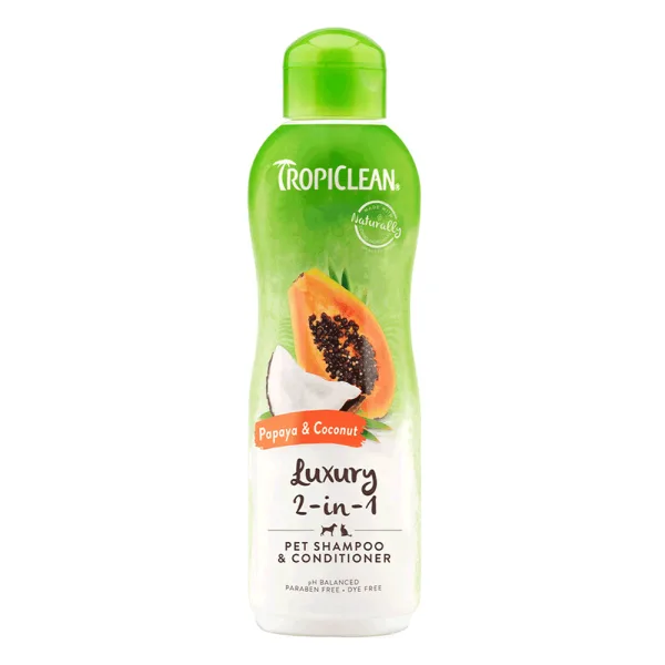 TropiClean Papaya & Coconut Кондиционер-шампунь увлажняющий для кошек и собак, папайя и кокос, 355 мл