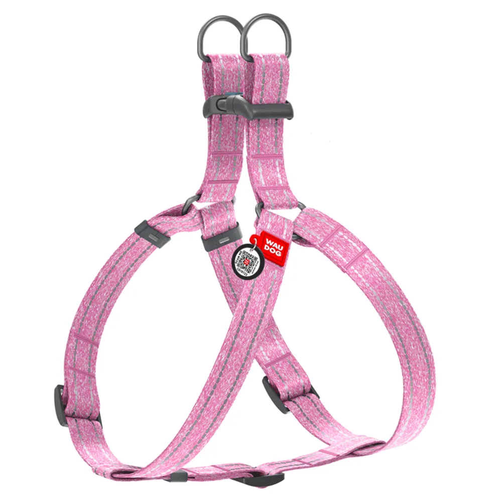 WAUDOG Re-cotton Шлей из хлопка с QR паспортом, светоотражающий пластиковый фастекс, S, Ш 15 мм, Д 40-55 см розовый